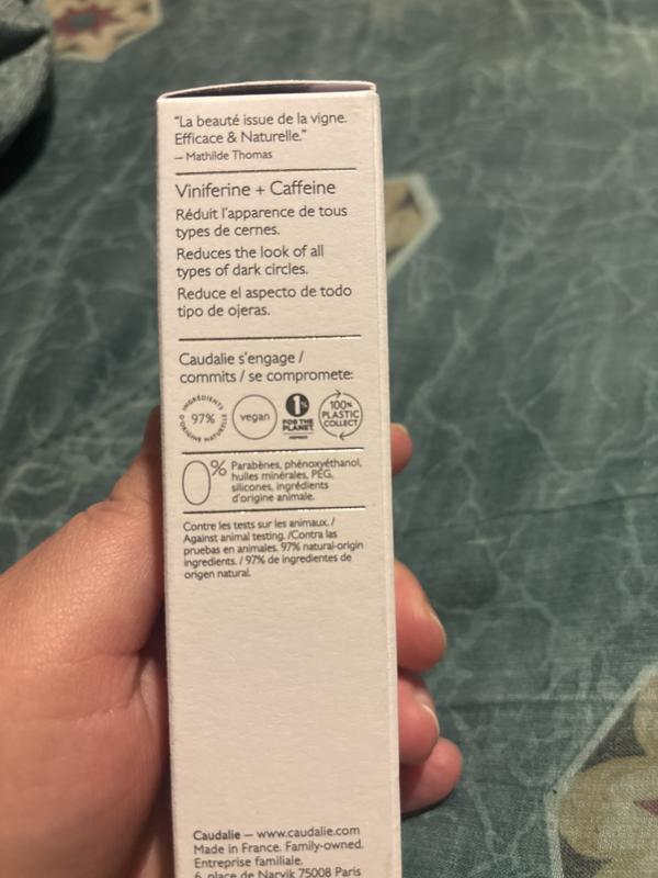 - Caffeine : Antioxidant, visibly reduces dark circles, visibly de-puffs. Our caffeine is of 100% natural-origin and extracted using green chemistry.