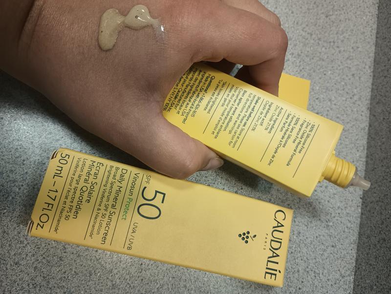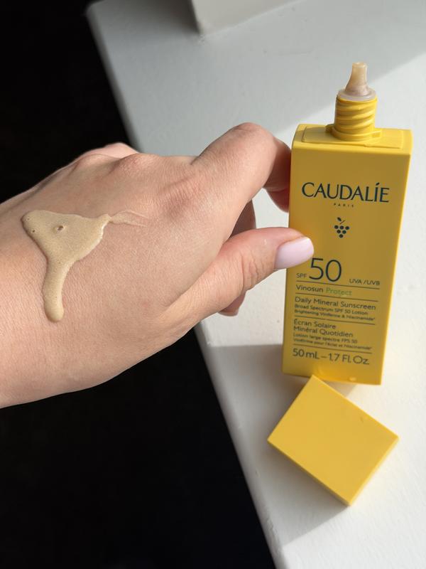 Vinosun Protect Brightening Daily Mineral Face Sunscreen SPF 50 with Niacinamide is great product for everyday use. It feels light and refreshing on the skin for all day protection. It give a gorgeous glow and doesn’t leave a white cast. complimentary from caudalieus